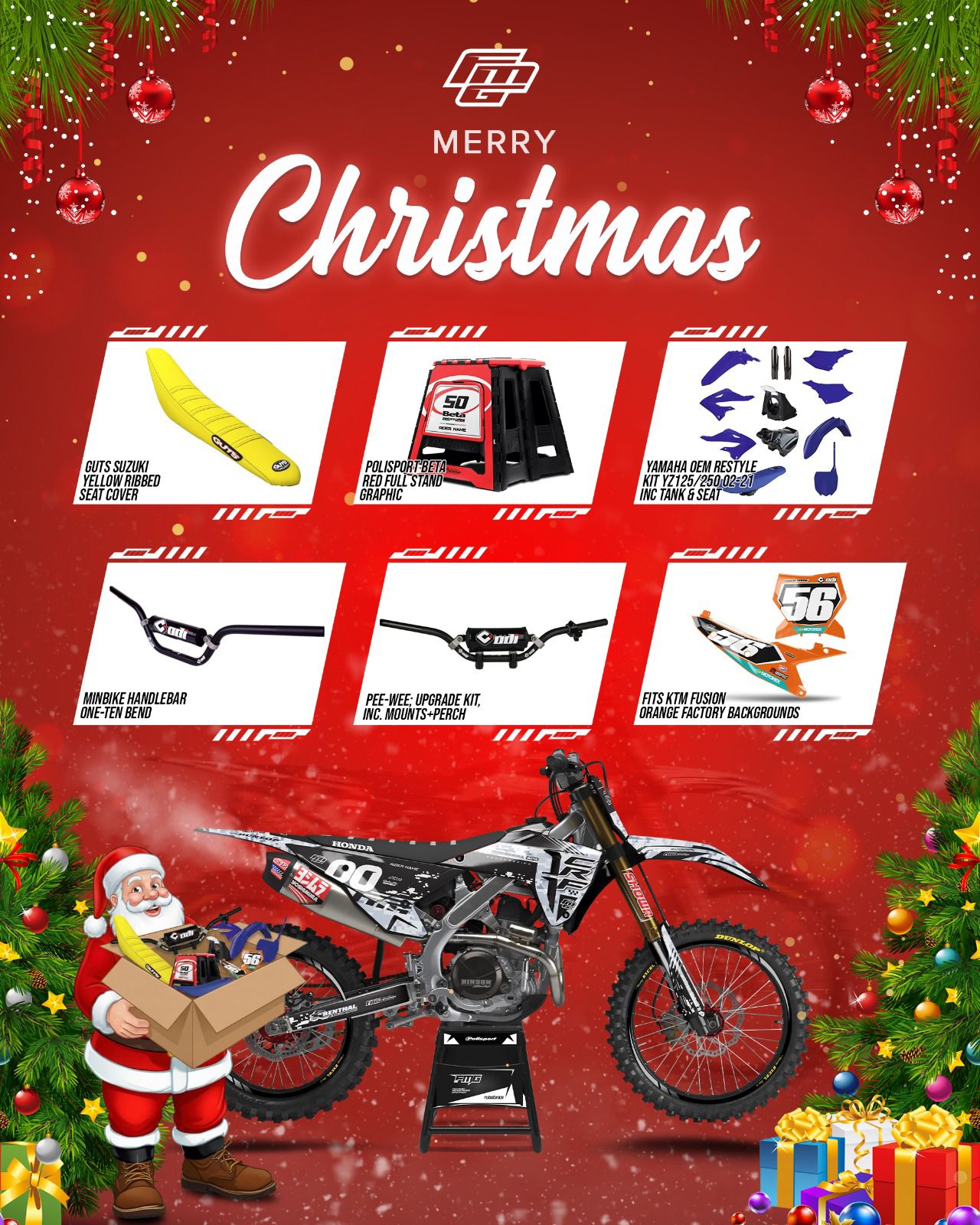 Add rider name, number and your choice of logos!